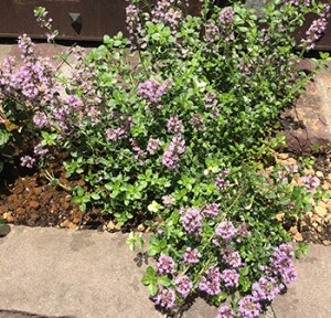 タイムの薄ピンク色の花が陽射しを浴びて、勢いよく咲いていました。