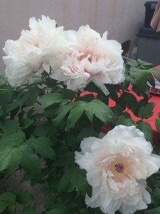 アンティーク雑貨とインテリアにこだわりを感じさせるすぐ近くのカフェさんの前に鉢植えのボタンが!!